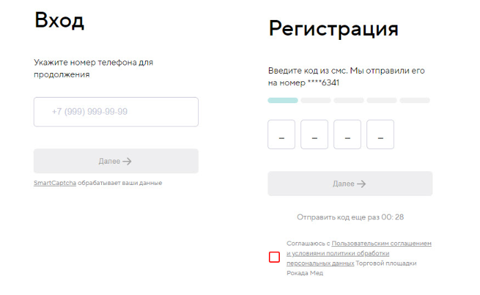 Во время регистрации мы создадим новый Rocada ID или используем существующий, если у вас уже есть аккаунт покупателя или продавца, привязанный к номеру.